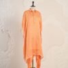 An effortless style in a flowy silhouette, crafted in a vibrant orange hue from wrinkle-free summer silk. It features pearl buttons with lace details on hem and sleeves and comes with contrast print dhoti pants, making it ideal for festive days and destination weddings.