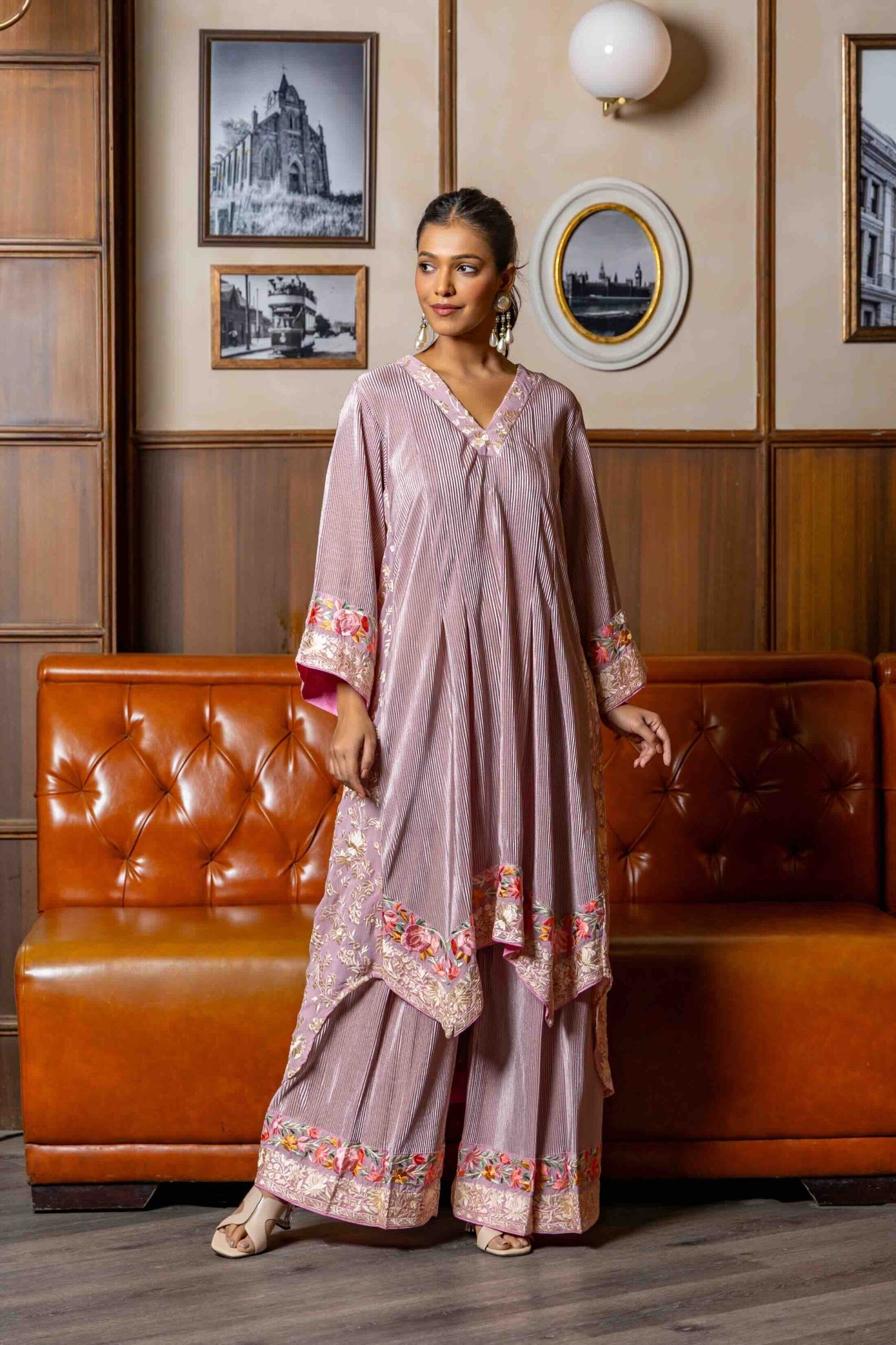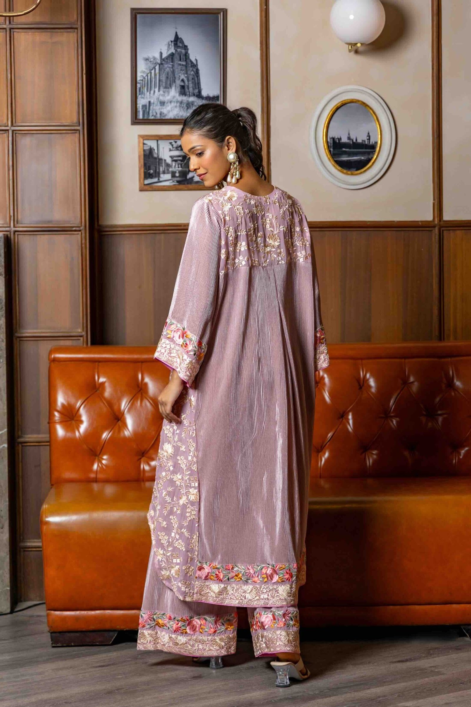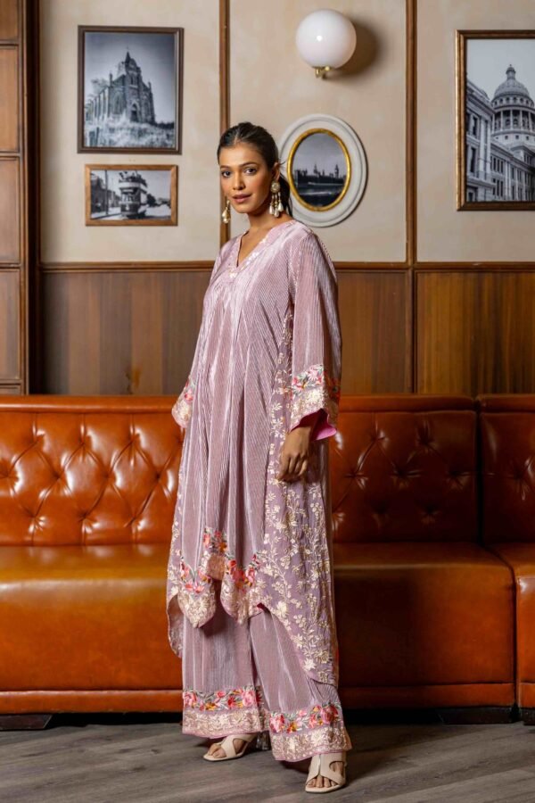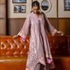 Pink Crinkle Satin Silk Set with Embroidery