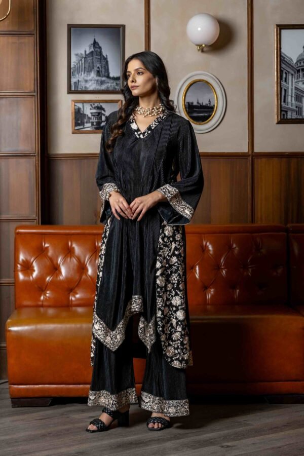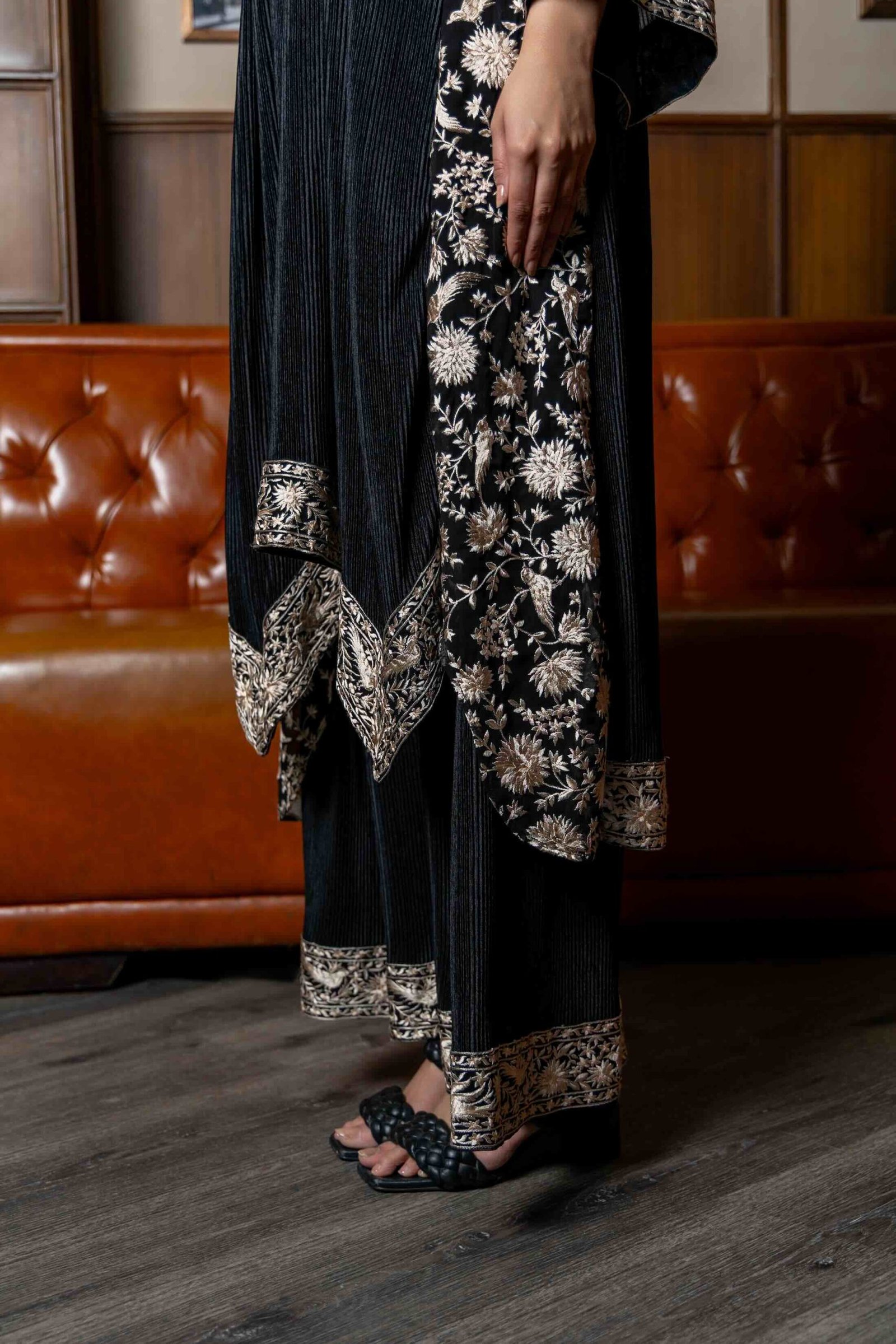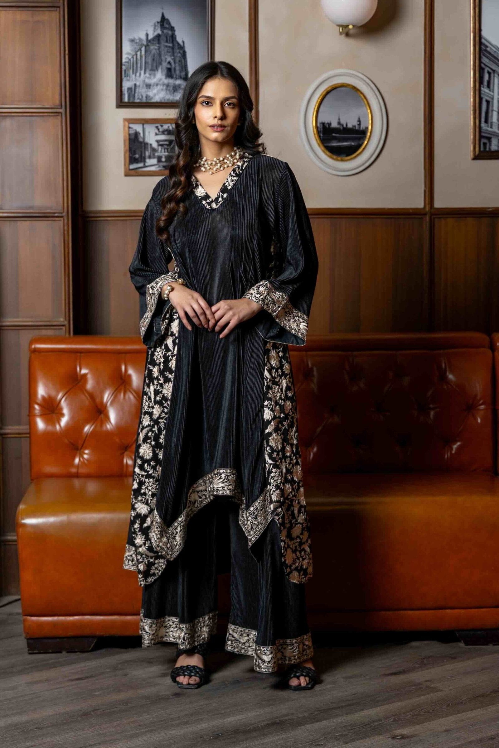 Step into effortless elegance with our wrinkle satin silk set, adorned with delicate embroidery for a graceful summer look.